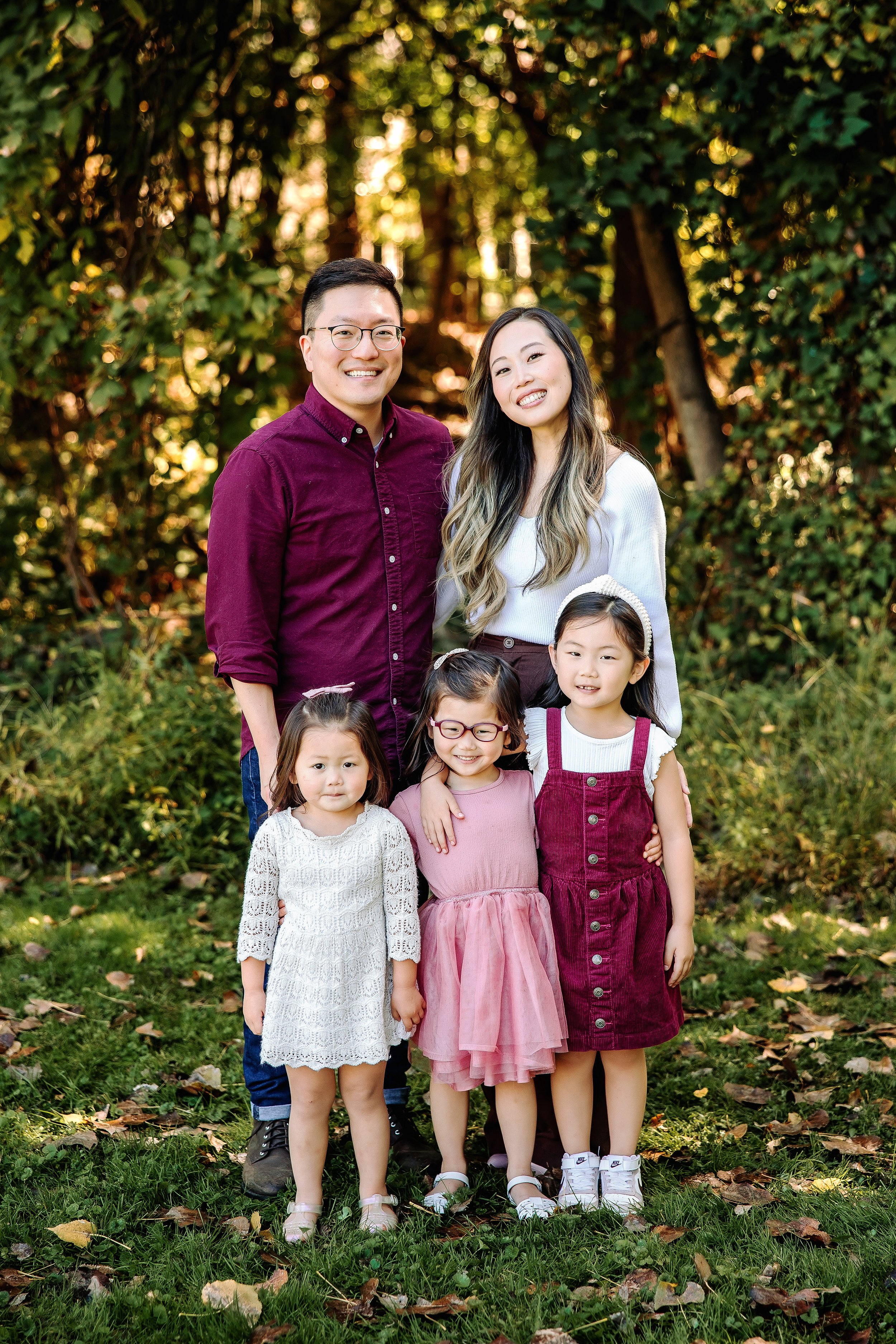 I recommend a good medium-full coverage foundation that blends well with your skin tone, and a lipstick or gloss that adds color, as opposed to a lip balm, will keep your lips looking distinct and luscious on camera. Or even better! If you want a little pampering, book a session with a makeup artist before your session to make you look and feel your most confident self. Don’t forget about those nails! Hands are naturally a major point of focus in family photos and having a clean, manicured set of nails goes a long way!