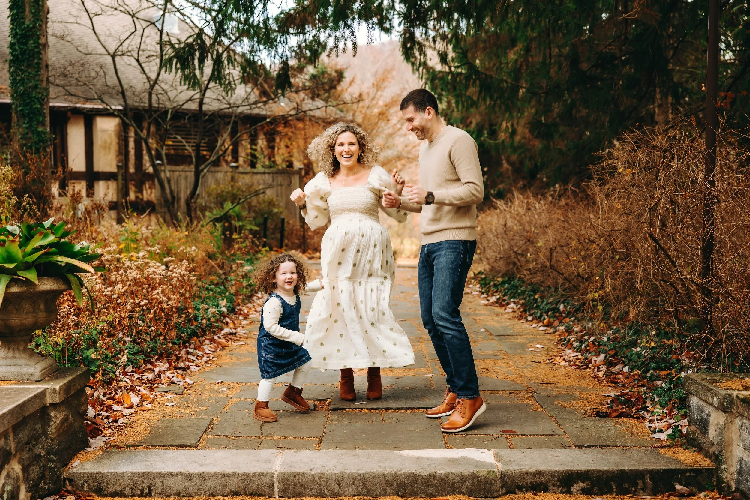 Choose a 2-3 color palette in the same tone and sprinkle in some neutrals to avoid matching. It’s best if the members of your family are not in the same exactly outfits/colors, and rather different shades of the same color or colors that compliment each other.